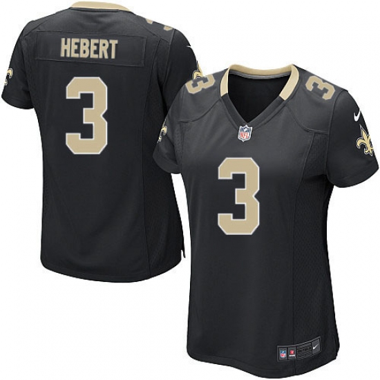 Home>NFL>New Orleans Saints>Bobby Hebert>Women's Nike New Orleans Saints #3 Bobby Hebert Game Black Team Color NFL Jersey