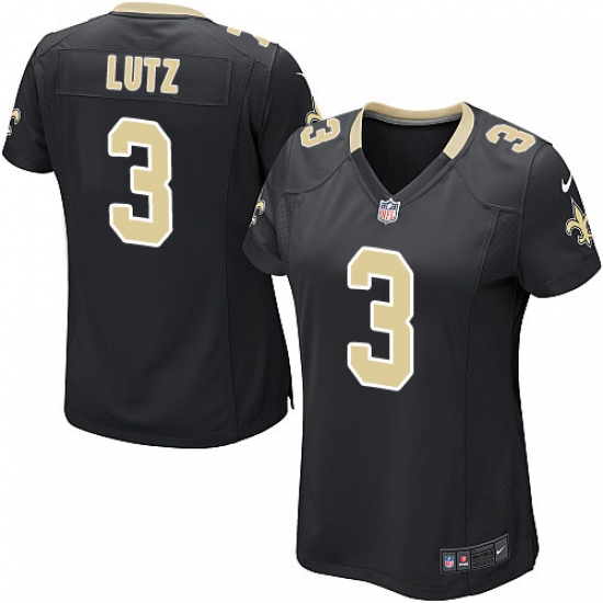 Home>NFL>New Orleans Saints>Will Lutz>Women's Nike New Orleans Saints #3 Will Lutz Game Black Team Color NFL Jersey