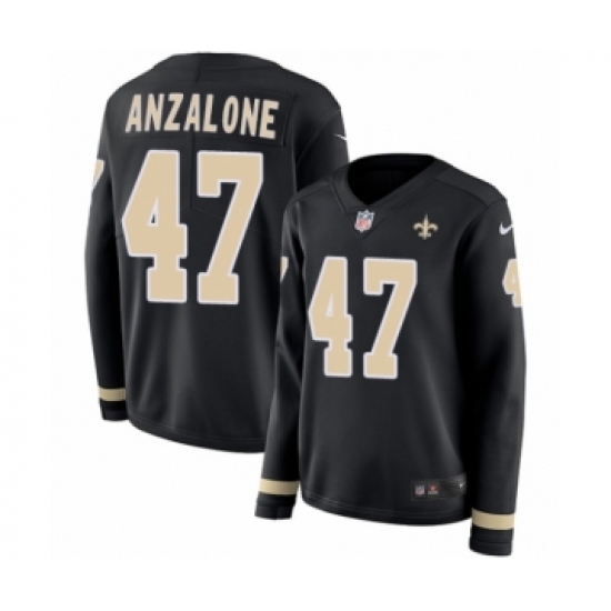 >Women's Nike New Orleans Saints #47 Alex Anzalone Limited Black Therma Long Sleeve NFL Jersey