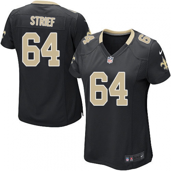 Home>NFL>New Orleans Saints>Zach Strief>Women's Nike New Orleans Saints #64 Zach Strief Game Black Team Color NFL Jersey
