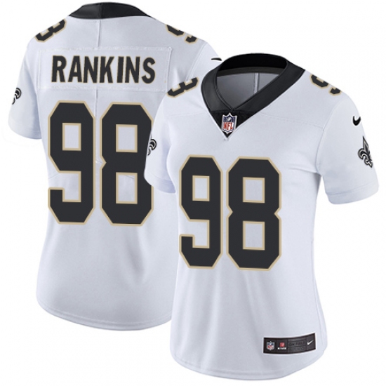 Women's Nike New Orleans Saints #98 Sheldon Rankins White Vapor Untouchable Limited Player NFL Jersey