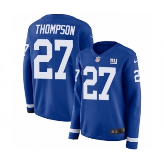 >Women's Nike New York Giants #27 Darian Thompson Limited Royal Blue Therma Long Sleeve NFL Jersey