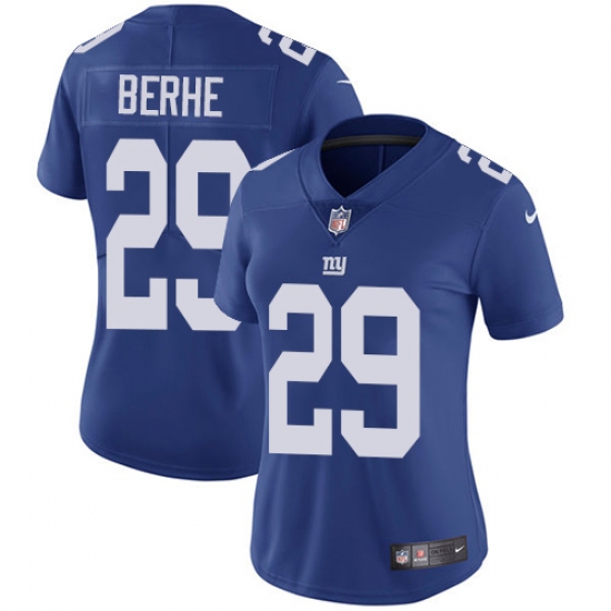 Home>NFL>New York Giants>Nat Berhe>Women's Nike New York Giants #29 Nat Berhe Royal Blue Team Color Vapor Untouchable Limited Player NFL Jersey