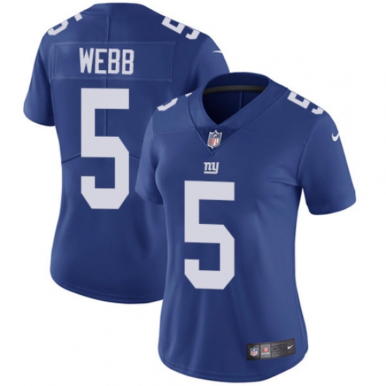 Women's Nike New York Giants #5 Davis Webb Royal Blue Team Color Vapor Untouchable Limited Player NFL Jersey