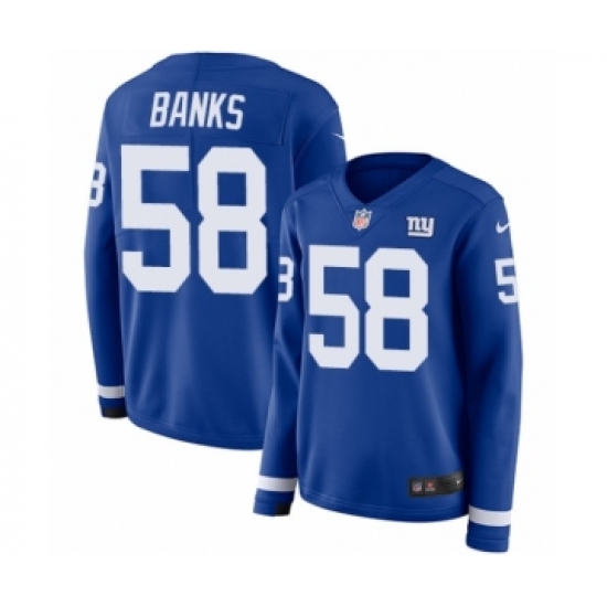 >Women's Nike New York Giants #58 Carl Banks Limited Royal Blue Therma Long Sleeve NFL Jersey