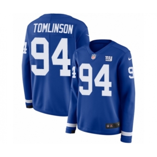 >Women's Nike New York Giants #94 Dalvin Tomlinson Limited Royal Blue Therma Long Sleeve NFL Jersey