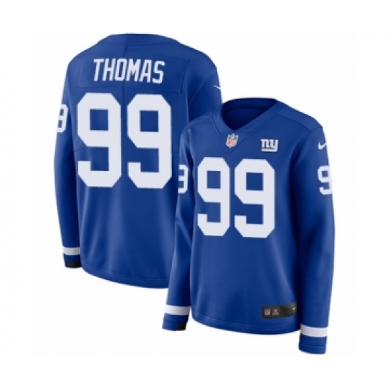 >Women's Nike New York Giants #99 Robert Thomas Limited Royal Blue Therma Long Sleeve NFL Jersey