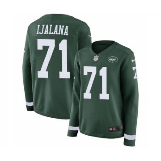 Women's Nike New York Jets #71 Ben Ijalana Limited Green Therma Long Sleeve NFL Jersey