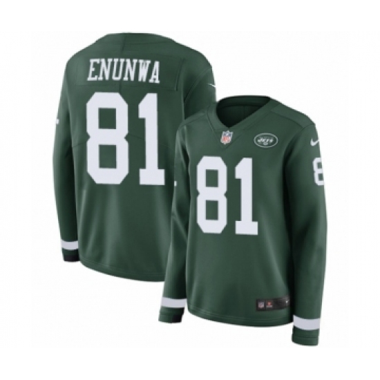 >Women's Nike New York Jets #81 Quincy Enunwa Limited Green Therma Long Sleeve NFL Jersey