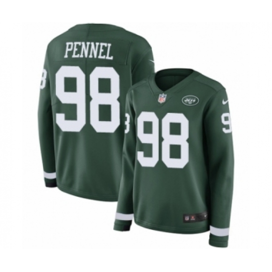 >Women's Nike New York Jets #98 Mike Pennel Limited Green Therma Long Sleeve NFL Jersey