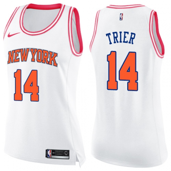 Women's Nike New York Knicks #14 Allonzo Trier Swingman White Pink Fashion NBA Jersey
