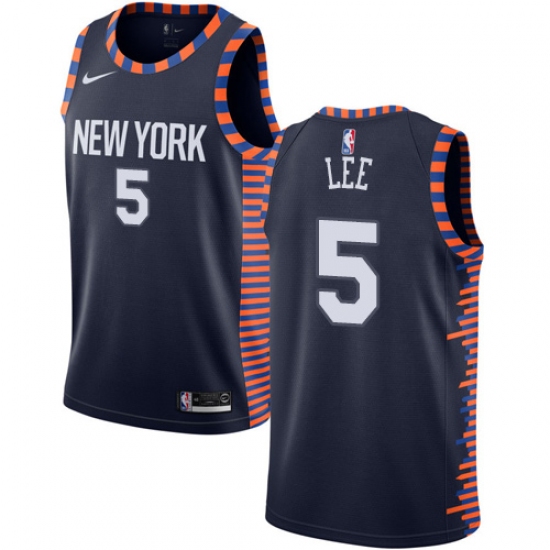 Men's Nike New York Knicks #5 Courtney Lee Swingman Navy Blue NBA Jersey - 2018 19 City Edition