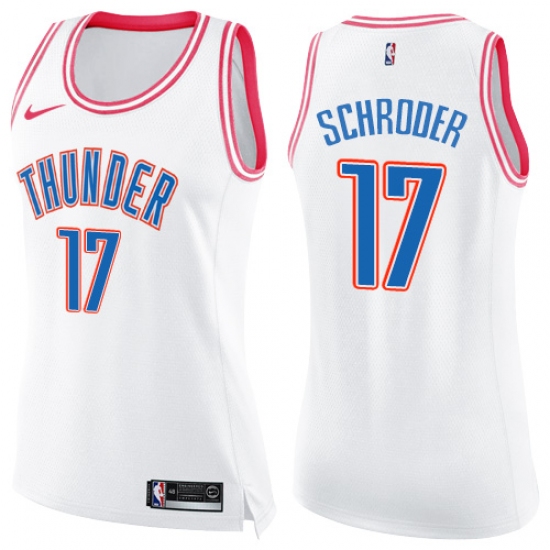 Women's Nike Oklahoma City Thunder #17 Dennis Schroder Swingman White Pink Fashion NBA Jersey