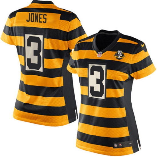Women's Nike Pittsburgh Steelers #3 Landry Jones Elite Yellow/Black Alternate 80TH Anniversary Throwback NFL Jersey