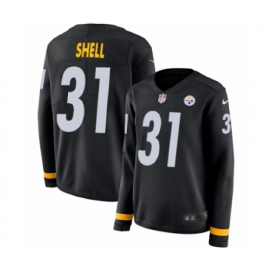 >Women's Nike Pittsburgh Steelers #31 Donnie Shell Limited Black Therma Long Sleeve NFL Jersey