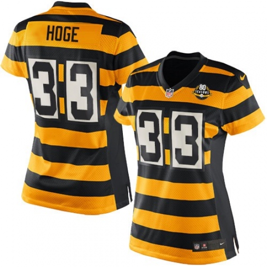 Women's Nike Pittsburgh Steelers #33 Merril Hoge Elite Yellow/Black Alternate 80TH Anniversary Throwback NFL Jersey