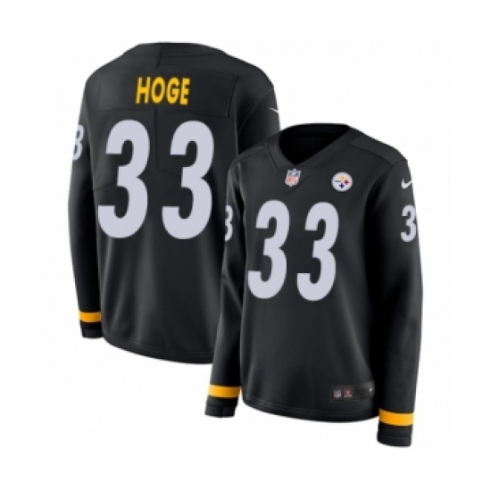 >Women's Nike Pittsburgh Steelers #33 Merril Hoge Limited Black Therma Long Sleeve NFL Jersey