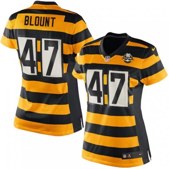 Women's Nike Pittsburgh Steelers #47 Mel Blount Elite Yellow/Black Alternate 80TH Anniversary Throwback NFL Jersey