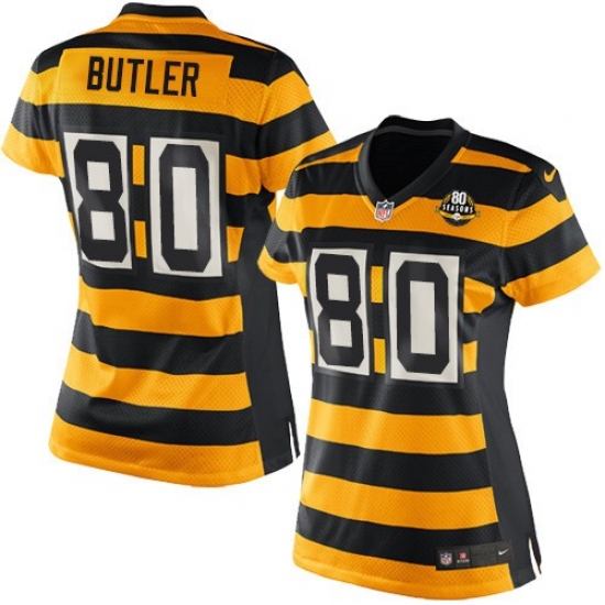 Women's Nike Pittsburgh Steelers #80 Jack Butler Limited Yellow/Black Alternate 80TH Anniversary Throwback NFL Jersey