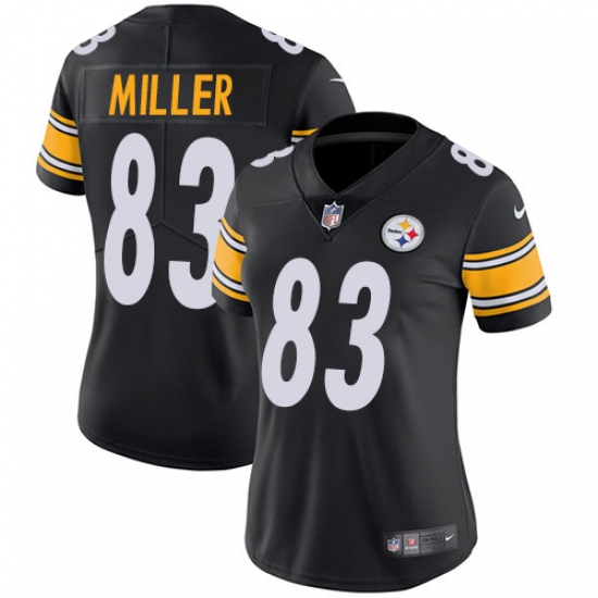 Home>NFL>Pittsburgh Steelers>Heath Miller>Women's Nike Pittsburgh Steelers #83 Heath Miller Black Team Color Vapor Untouchable Limited Player NFL Jersey