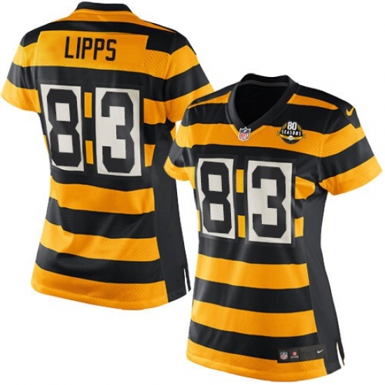 Women's Nike Pittsburgh Steelers #83 Louis Lipps Elite Yellow/Black Alternate 80TH Anniversary Throwback NFL Jersey
