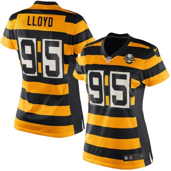 Home>NFL>Pittsburgh Steelers>Greg Lloyd>Women's Nike Pittsburgh Steelers #95 Greg Lloyd Limited Yellow/Black Alternate 80TH Anniversary Throwback NFL Jersey