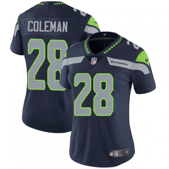 Home>NFL>Seattle Seahawks>Justin Coleman>Women's Nike Seattle Seahawks #28 Justin Coleman Navy Blue Team Color Vapor Untouchable Limited Player NFL Jersey