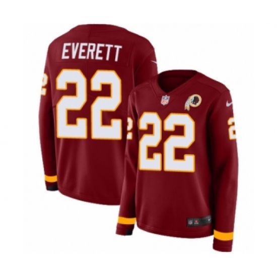 Women's Nike Washington Redskins #22 Deshazor Everett Limited Burgundy Therma Long Sleeve NFL Jersey