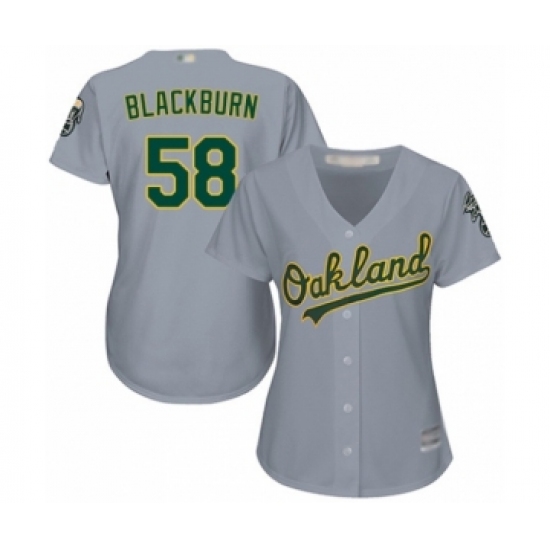 >Women's Oakland Athletics #58 Paul Blackburn Authentic Grey Road Cool Base Baseball Player Jersey