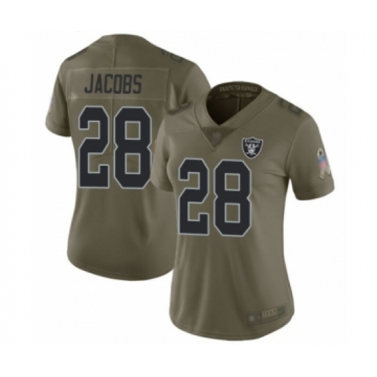 >Women's Oakland Raiders #28 Josh Jacobs Limited Olive 2017 Salute to Service Football Jersey