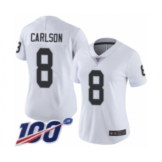 >Women's Oakland Raiders #8 Daniel Carlson White Vapor Untouchable Limited Player 100th Season Football Jersey