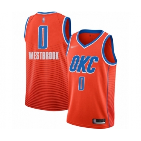 Men's Oklahoma City Thunder #0 Russell Westbrook Authentic Orange Finished Basketball Jersey - Statement Edition