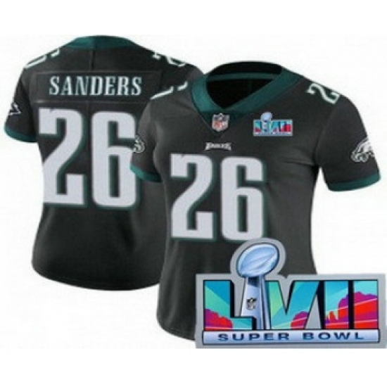 >Women's Philadelphia Eagles #26 Miles Sanders Limited Black Super Bowl LVII Vapor Jersey