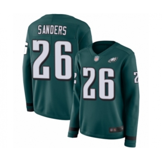 >Women's Philadelphia Eagles #26 Miles Sanders Limited Green Therma Long Sleeve Football Jersey