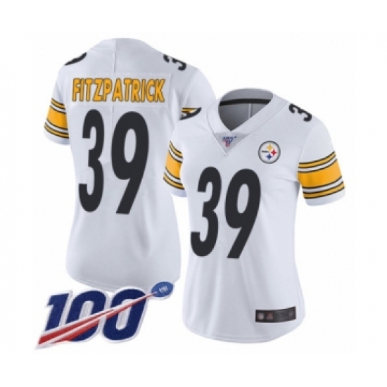 >Women's Pittsburgh Steelers #39 Minkah Fitzpatrick White Vapor Untouchable Limited Player 100th Season Football Jersey