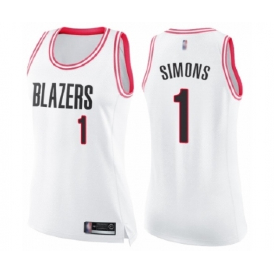 >Women's Portland Trail Blazers #1 Anfernee Simons Swingman White Pink Fashion Basketball Jersey