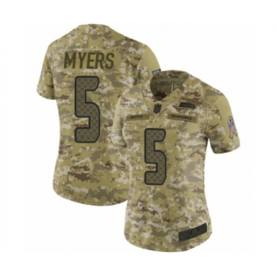 >Women's Seattle Seahawks #5 Jason Myers Limited Camo 2018 Salute to Service Football Jersey