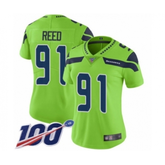 >Women's Seattle Seahawks #91 Jarran Reed Limited Green Rush Vapor Untouchable 100th Season Football Jersey