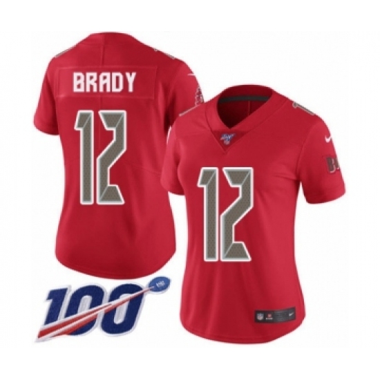 Women's Tampa Bay Buccaneers #12 Tom Brady Limited Red Rush Vapor Untouchable 100th Season Football Jersey