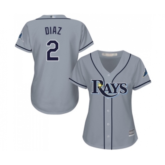 Women's Tampa Bay Rays #2 Yandy Diaz Replica Grey Road Cool Base Baseball Jersey