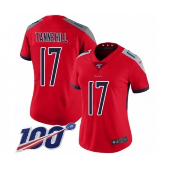 >Women's Tennessee Titans #17 Ryan Tannehill Limited Red Inverted Legend 100th Season Football Jersey