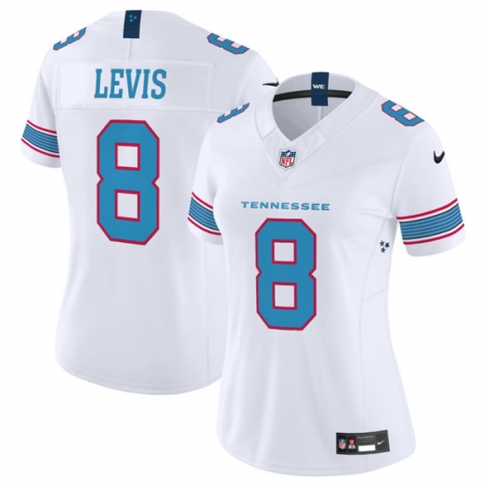 >Women's Tennessee Titans #8 Will Levis White 2026 F.U.S.E. Vapor Limited Stitched Football Jersey(Run Small)