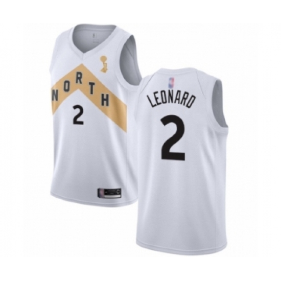 >Women's Toronto Raptors #2 Kawhi Leonard Swingman White 2019 Basketball Finals Champions Jersey - City Edition