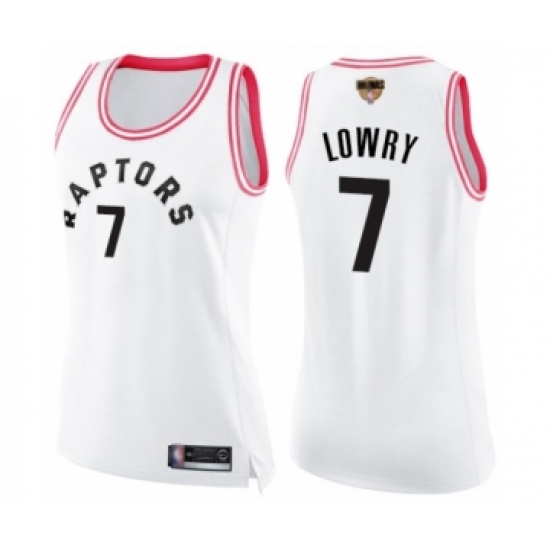 Women's Toronto Raptors #7 Kyle Lowry Swingman White Pink Fashion 2019 Basketball Finals Bound Jersey