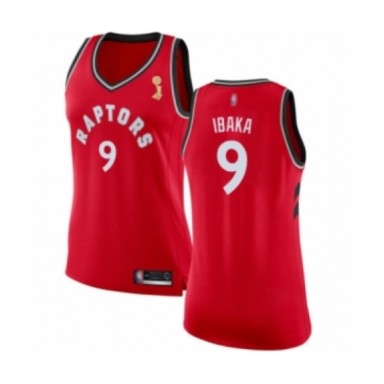 >Women's Toronto Raptors #9 Serge Ibaka Swingman Red 2019 Basketball Finals Champions Jersey - Icon Edition