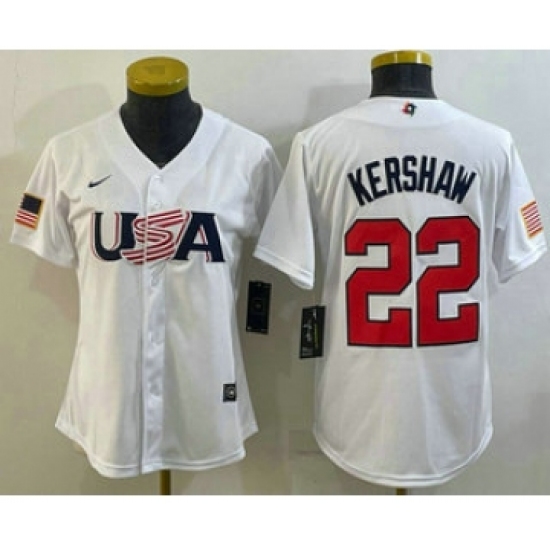 Women's USA Baseball #22 Clayton Kershaw 2023 White World Classic Stitched Jersey
