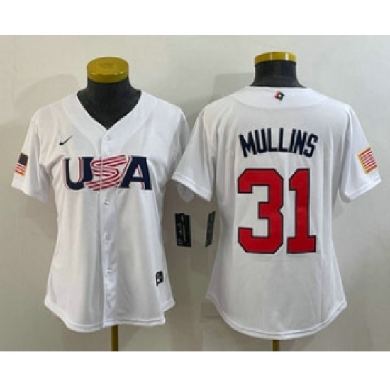 >Women's USA Baseball #31 Cedric Mullins 2023 White World Classic Stitched Jersey