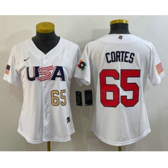 >Womens USA Baseball #65 Nestor Cortes Number 2023 White World Classic Stitched Jersey