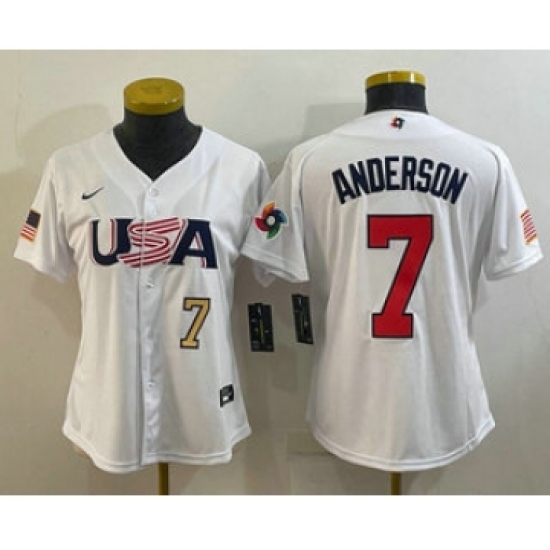 >Womens USA Baseball #7 Tim Anderson Number 2023 White World Classic Stitched Jersey