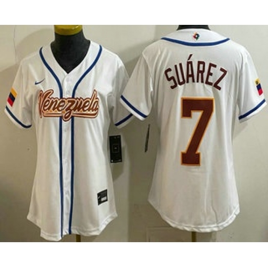 Women's Venezuela #7 Eugenio Suarez White 2026 World Baseball Classic Cool Base Jersey